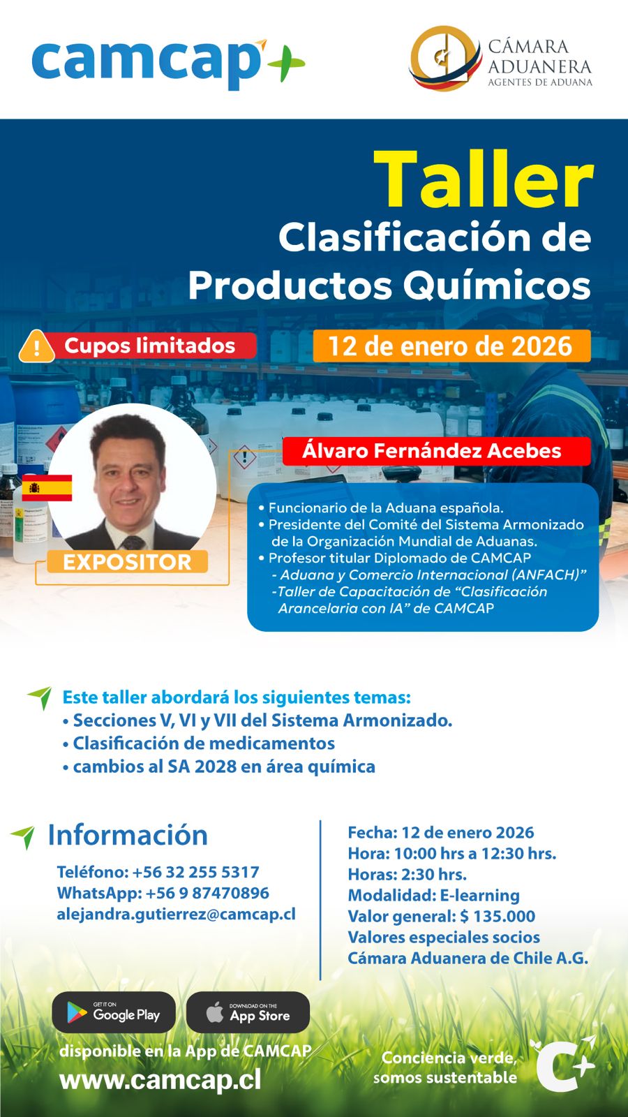 El Instituto de Formación de la Cámara Aduanera de Chile (CAMCAP) tiene el honor de invitar a la comunidad de comercio exterior al taller especializado "Clasificación de Productos Químicos".